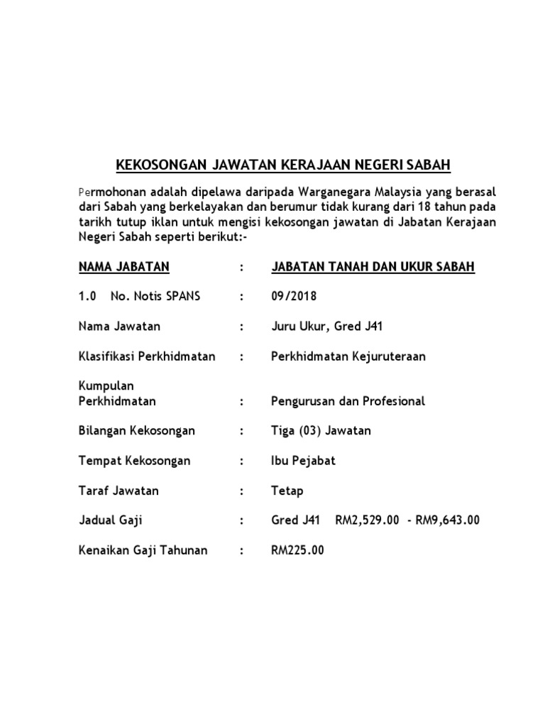 Kekosongan Jawatan Kerajaan Negeri Sabah Nama Jabatan Jabatan Tanah Dan Ukur Sabah Pdf